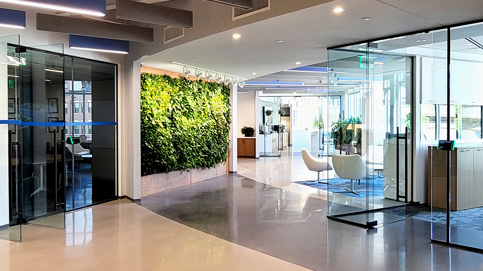 In partnership with Alliance Architecture, Hannon Armstrong sought a living wall feature that would welcome visitors and bring a natural element into their Annapolis headquarters. The installation was designed to nod to the company’s broader sustainability mission, aligning with their focus on climate-positive solutions. The wall balances visual impact with long-term performance, serving as both a subtle reflection of company values and a memorable focal point for guests.